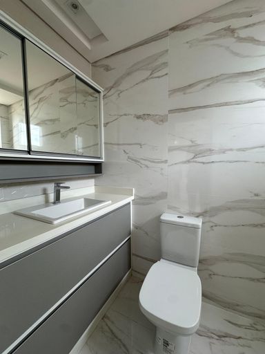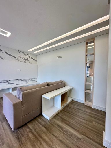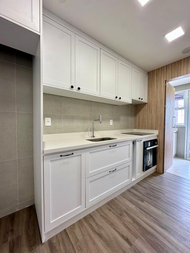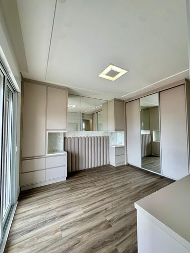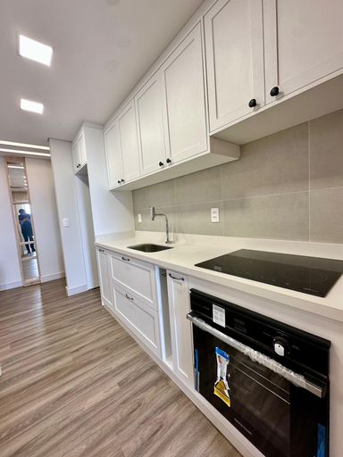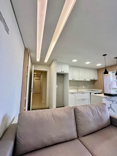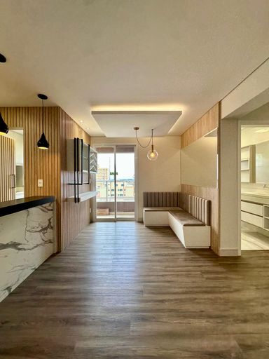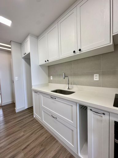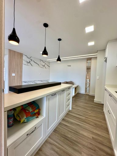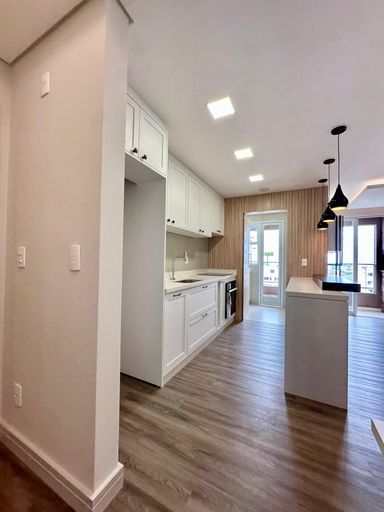 Semi mobiliado, contendo: Cozinha com móveis planejados, bancada em granito e iluminação personalizada, área de serviço com armários planejados, sacada com churrasqueira.