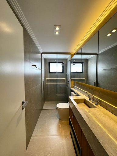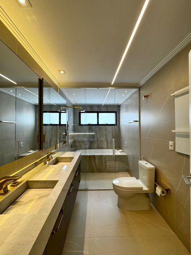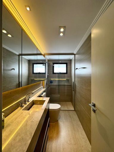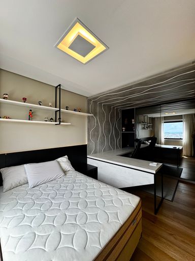 •Todas as suítes são adornadas com móveis planejados de alto padrão e contam com projeto luminotecnico e ar condicionado quente e frio;