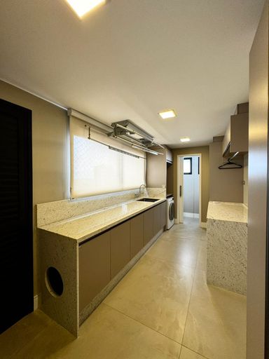 •Área de serviço finamente planejada, incluindo varal elétrico e secador de teto.