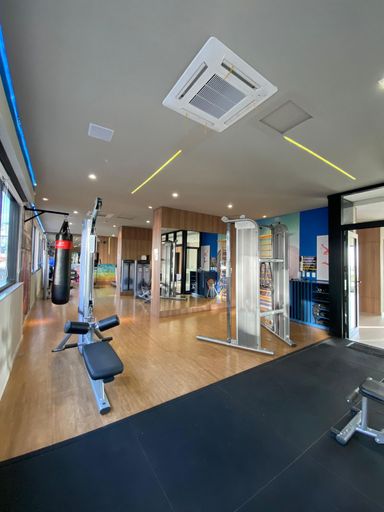 Garagens com piso Epóxi, iluminada, calibradores de pneu e câmeras de vídeo.
