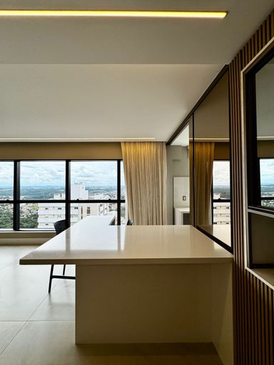 •Todas as janelas das suítes possuem persianas e cortinas elétricas controladas remotamente e com opção de integração com assistentes virtuais;