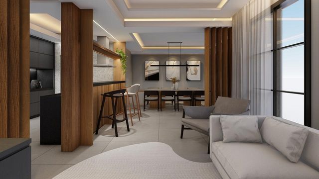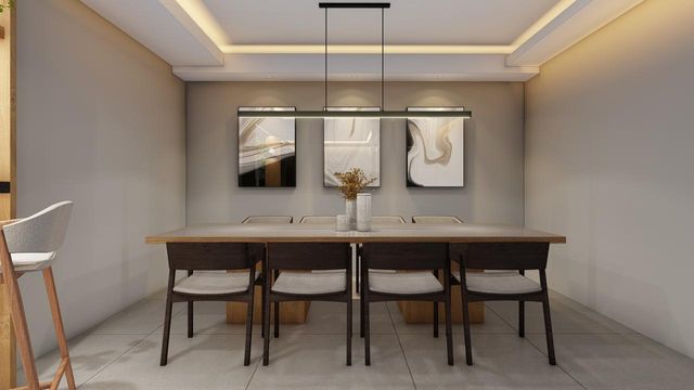 Sala de estar e jantar conjugadas;