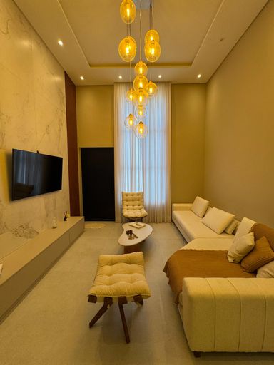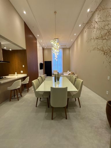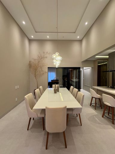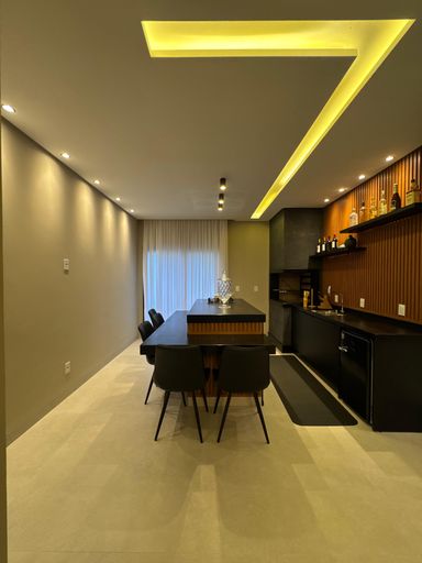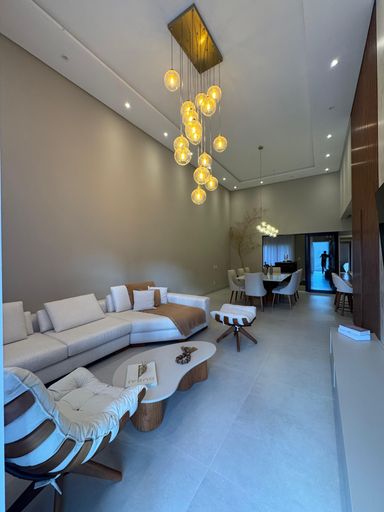 Sala de estar e sala de jantar com pé direito alto