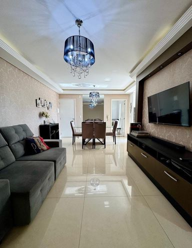 Apartamento medindo aprox. 170m², contendo 3 quartos (sendo 1 suíte) sala para 2 ambientes, cozinha, sacada com churrasqueira, lavabo, área de serviço, BWC social e 1 vagas de garagem. * Móveis na cozinha. Condomínio conta com: * Elevadores; * Salão de festas com churrasqueira; * Piscina; * Playground; * Portaria 24h.