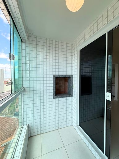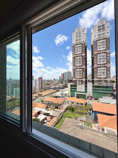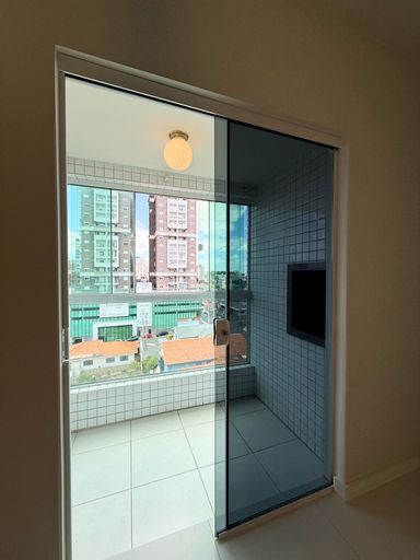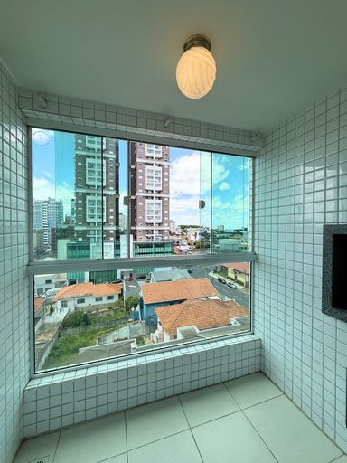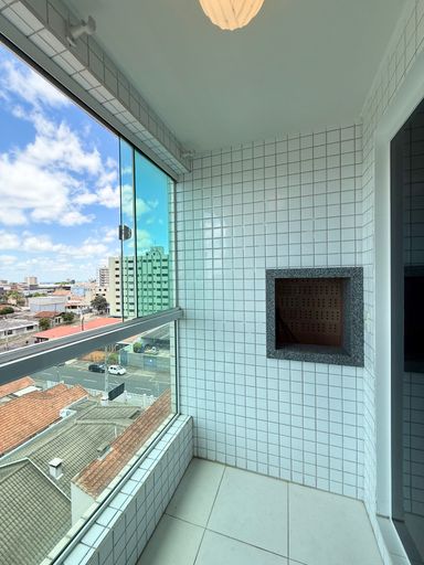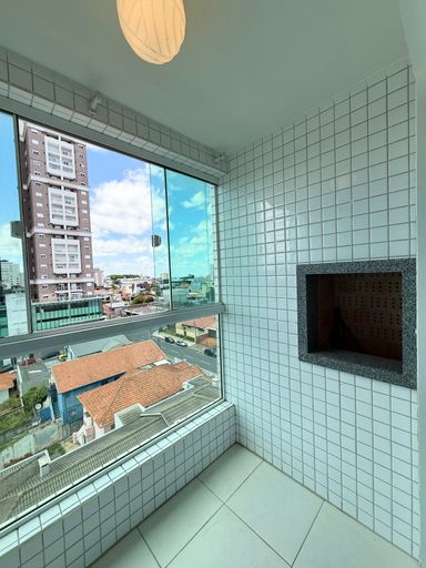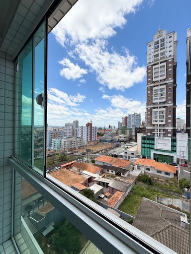 Apartamento em andar alto, com garagem privativa e sacada com churrasqueira.