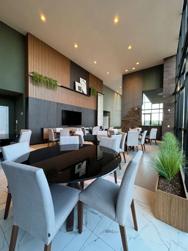 Área de lazer mobiliada e decorada;