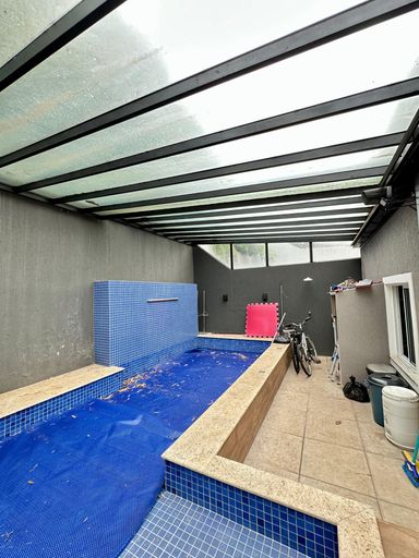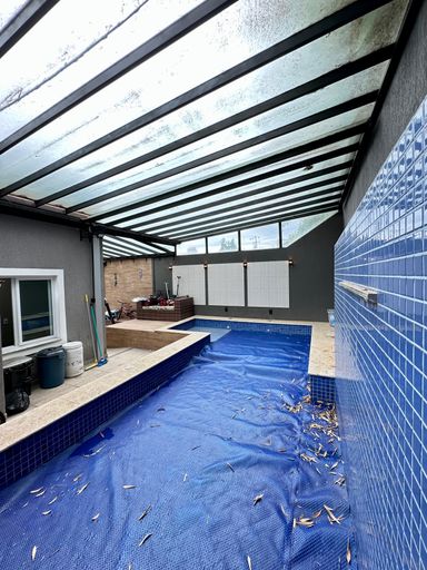 Piscina com aquecimento solar e cobertura retrátil automatizada
