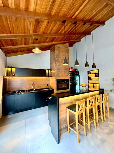 Ampla área gourmet com churrasqueira;