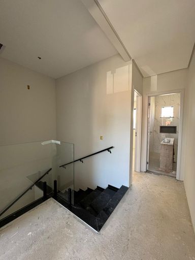 No piso superior 3 quartos, sendo 1 suíte com sacada;