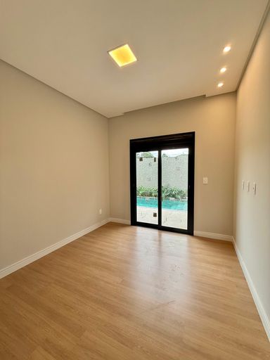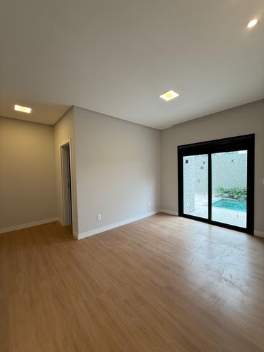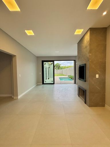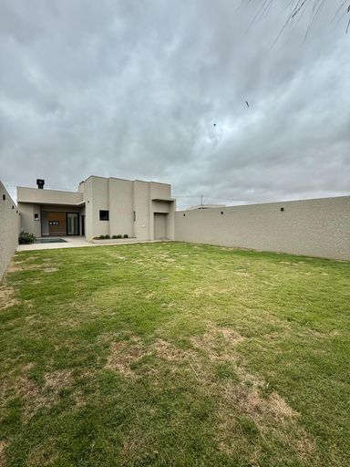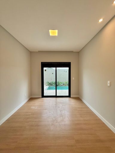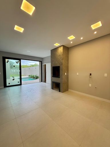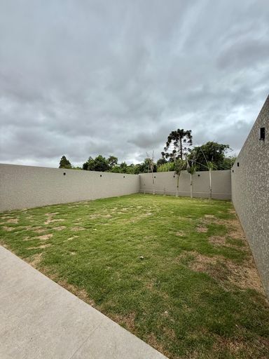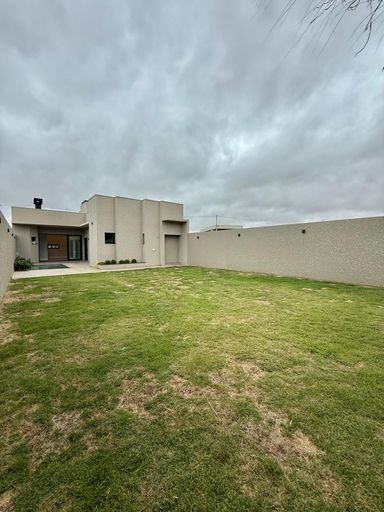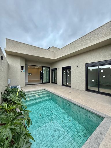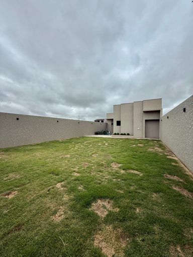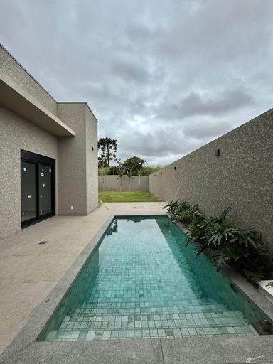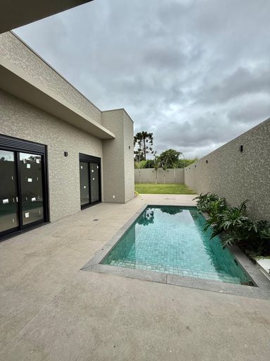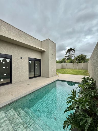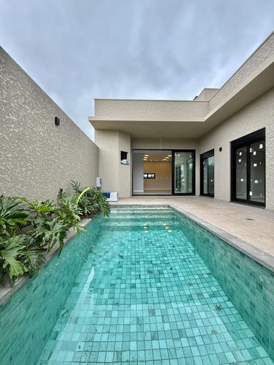 Residência totalmente térrea com amplo espaço de terreno e com piscina.