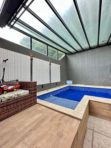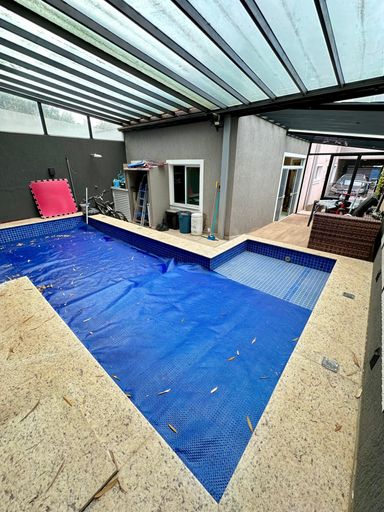 Piscina com aquecimento solar e cobertura retrátil automatizada